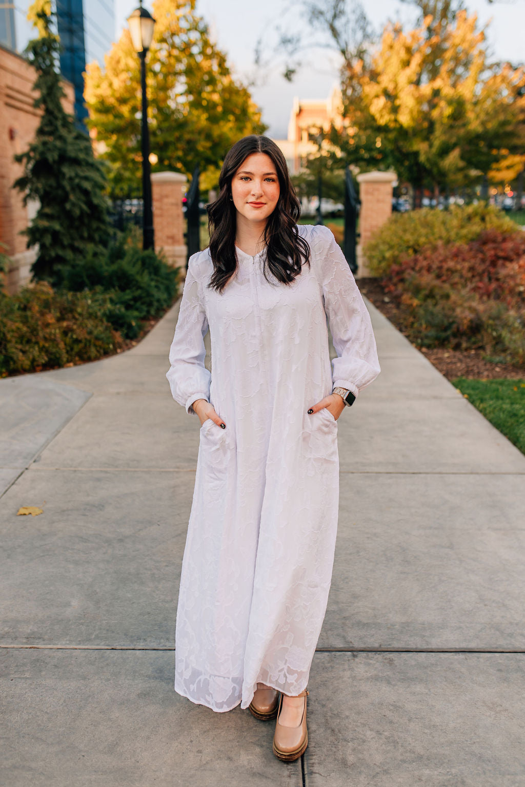 The Alora dress is a simple dress with an elegant take. This dress has a subtle v-neckline, a hidden zipper at the front, and a straight and comfortable silhouette. It has small gatherings at the back and an all over lace overlay for added detail! This dress has two side pockets and is fully lined.