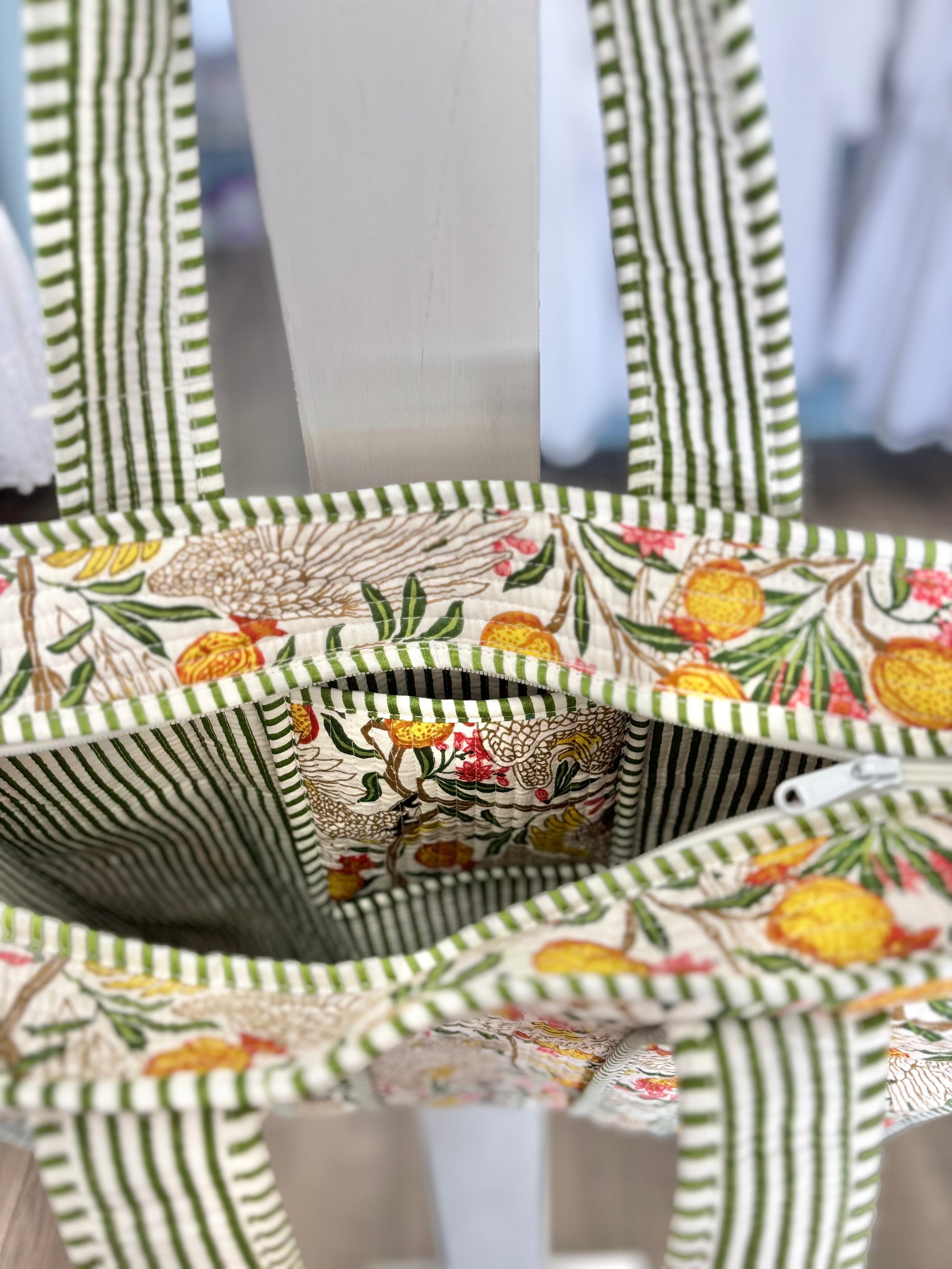Big enough to hold everything you need, but still light-weight, this cotton quilted bag is perfect to take to the Temple and versatile enough to use it for any of your other outings. This bag has a zipper closure on top and an inside pouch pocket. This bag makes a great gift. Order one for yourself and one for a friend!