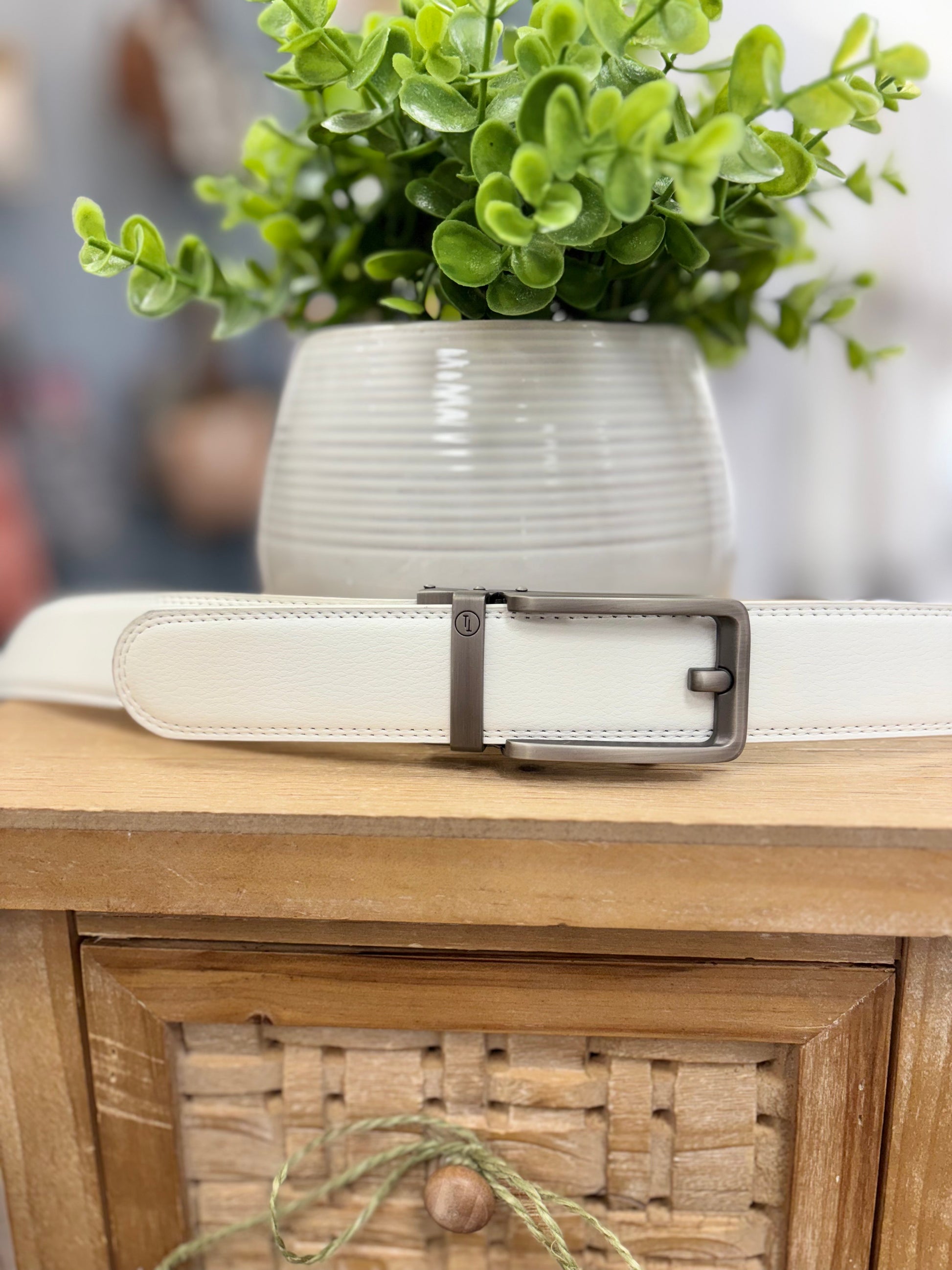This leather ratchet belt allows you to have the perfect fit no matter your waist size. Belt comes in 58" length so you can cut it to your size and attach the buckle. The ratchet system allows you to adjust the fit with an easy click. The traditional buckle is classic and easy to undo. Great as a Temple belt, church belt or for any other occasion.
