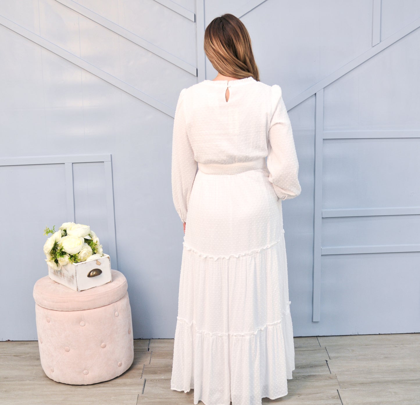 This lace dress is both beautiful and comfortable. The straight silhouette and lace design is flattering to any figure. There are two side seam pockets that are hidden from view. The entire dress is lined, and there is no back zipper or opening. Wear it as an LDS temple dress or for any special occasions.