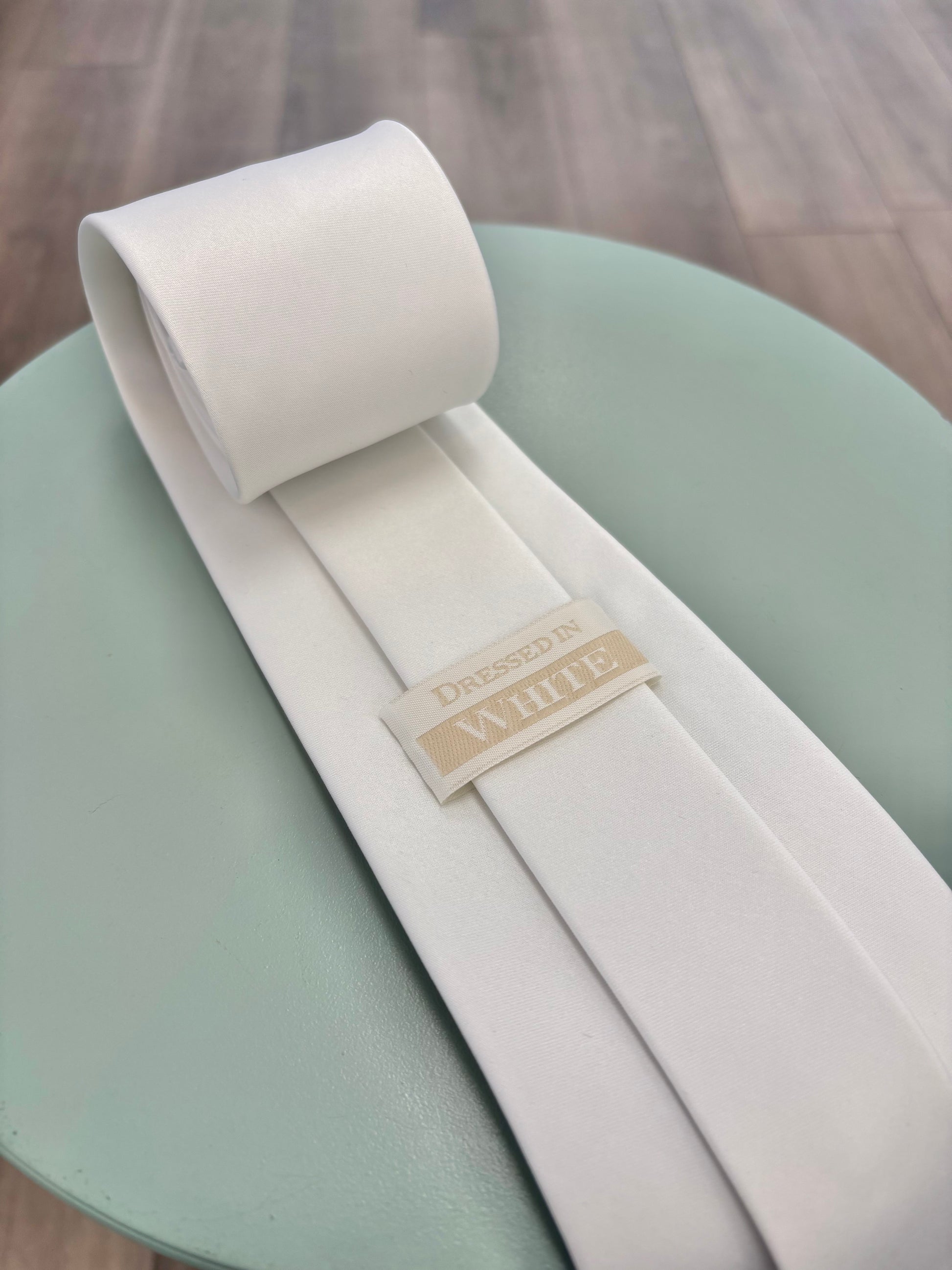 Made from soft satin polyester fabric, this tie is solid white and is ideal for LDS Temple visits and Temple workers. It measures 55" long and is 3.5" wide at the bottom.