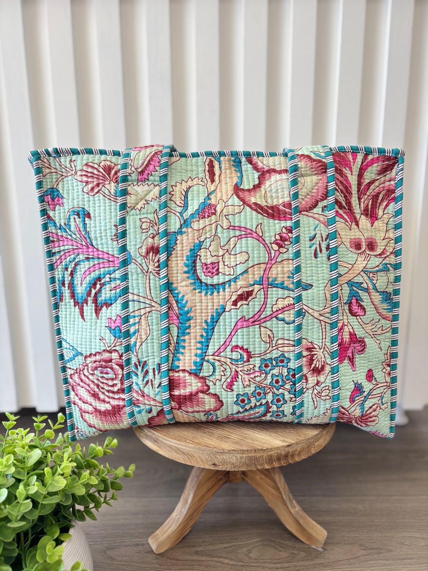 Big enough to hold everything you need, but still light-weight, this cotton quilted bag is perfect to take to the Temple and versatile enough to use it for any of your other outings. This bag has a zipper closure on top and an inside pouch pocket. This bag makes a great gift. Order one for yourself and one for a friend!